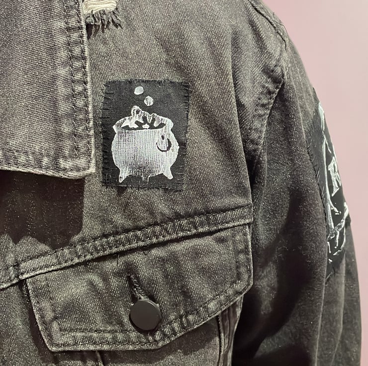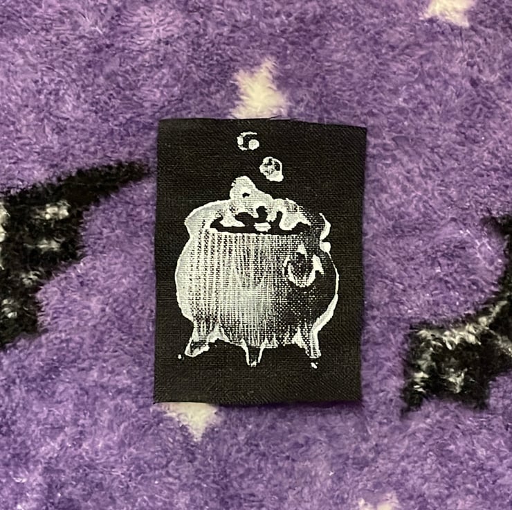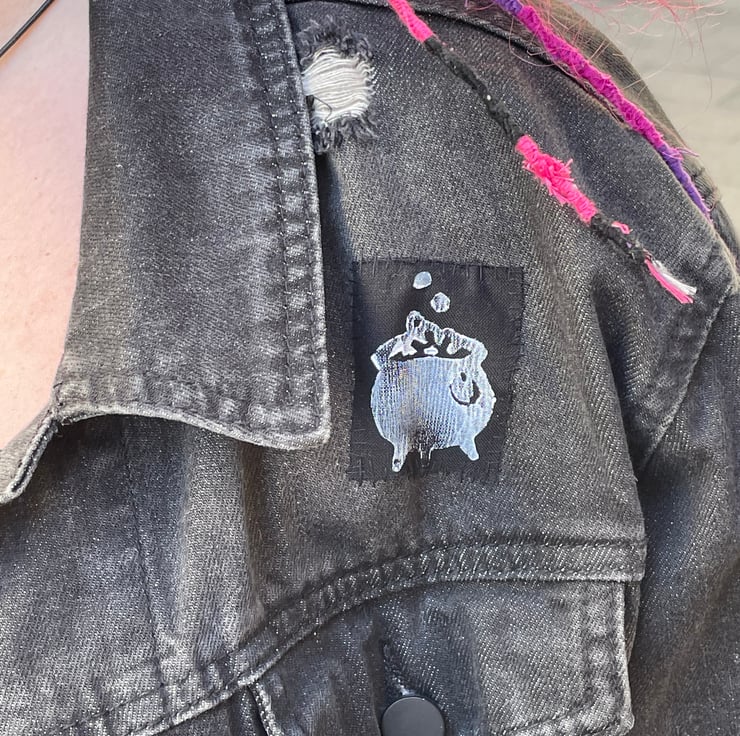 Handcrafted ink stamp patch, with no two the same. Bubble bubble bubble, the witches are to blame.