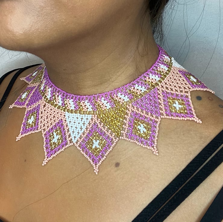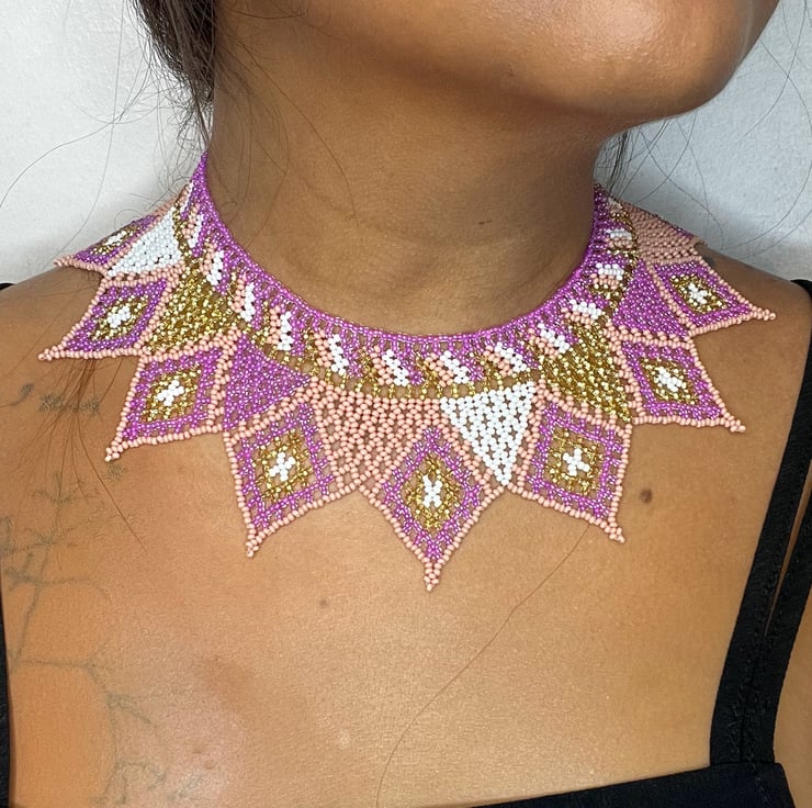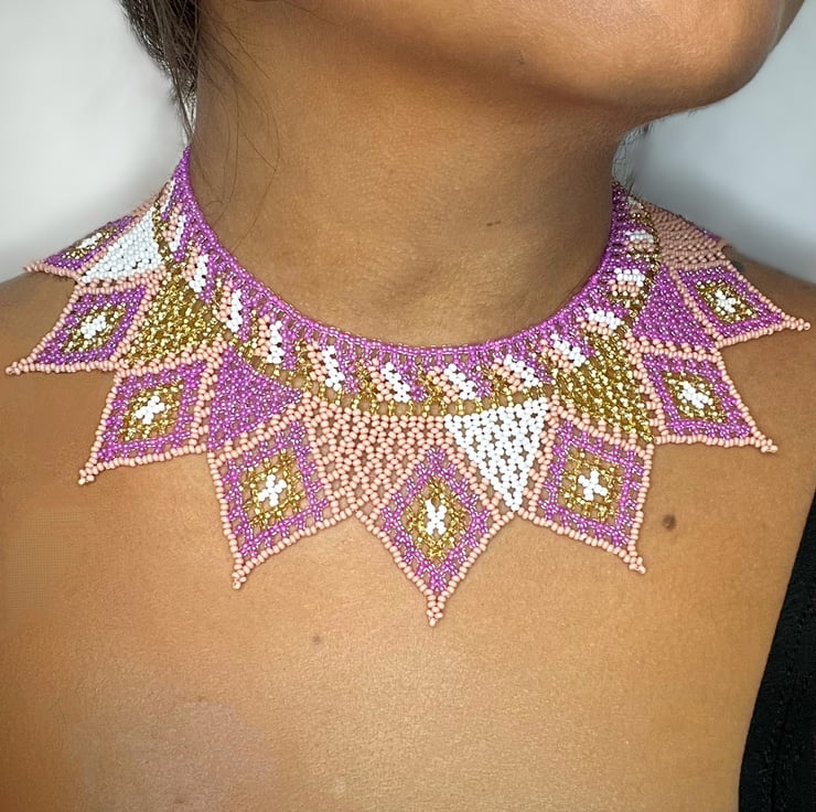 (Each beaded necklace is unique, so the sizes provided are approximate.)