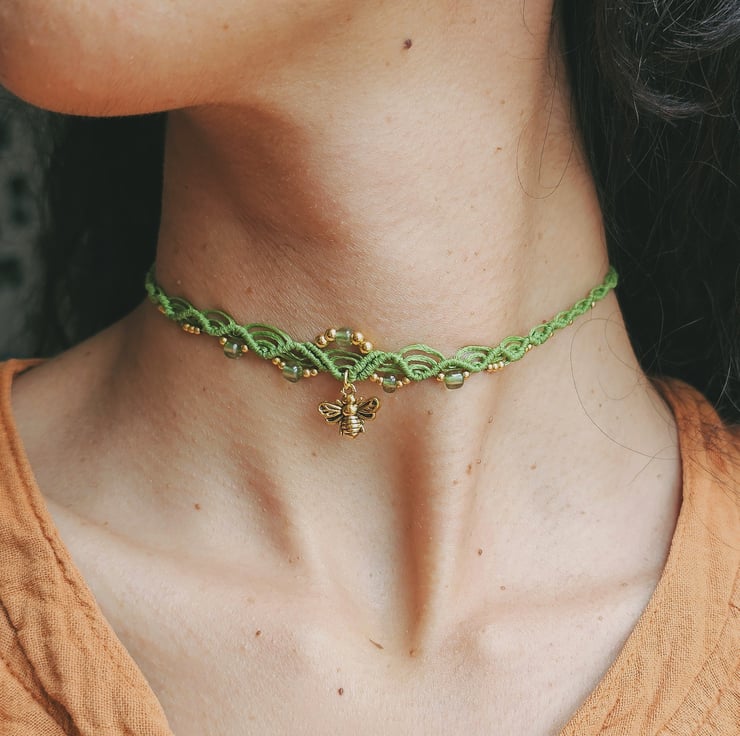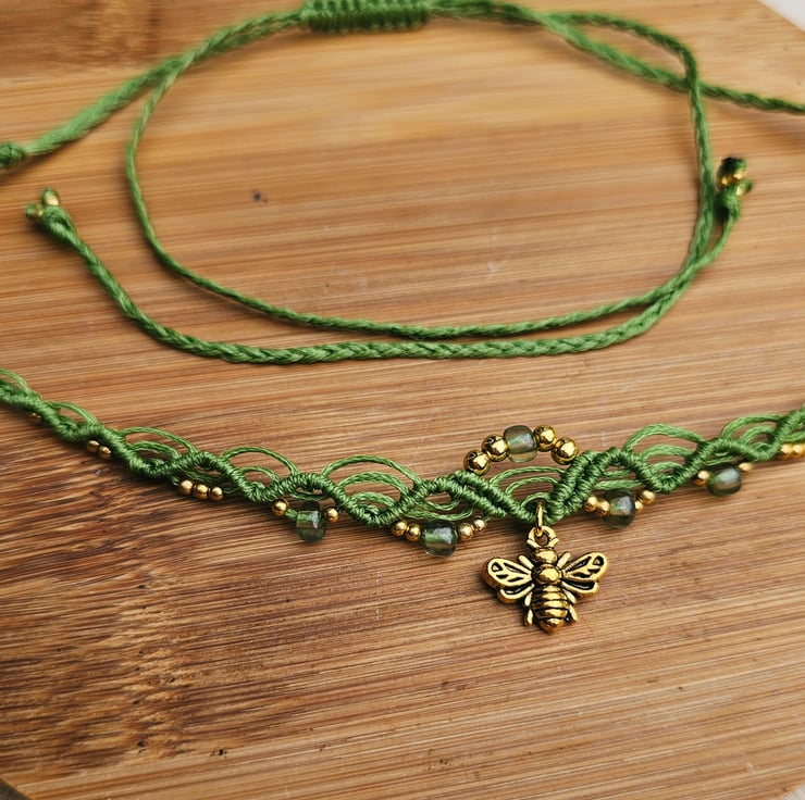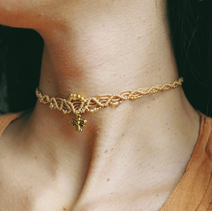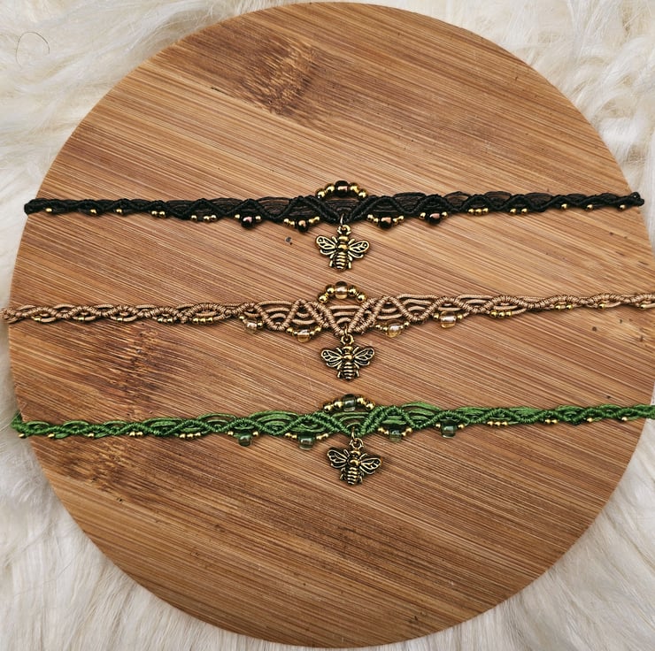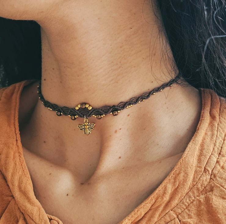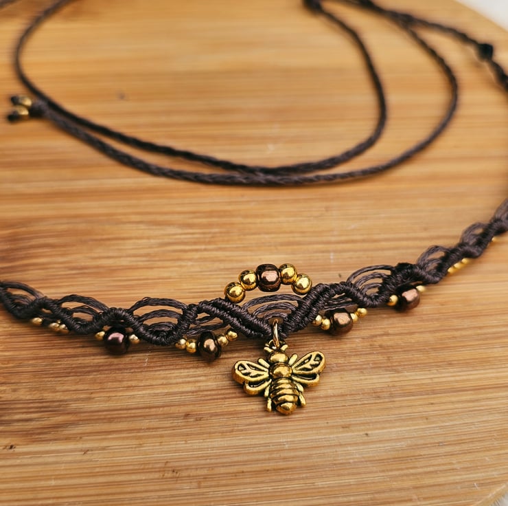 Made with durable polyester cord, decorated with beads and a bold bee pendant