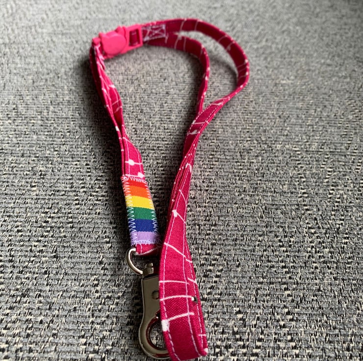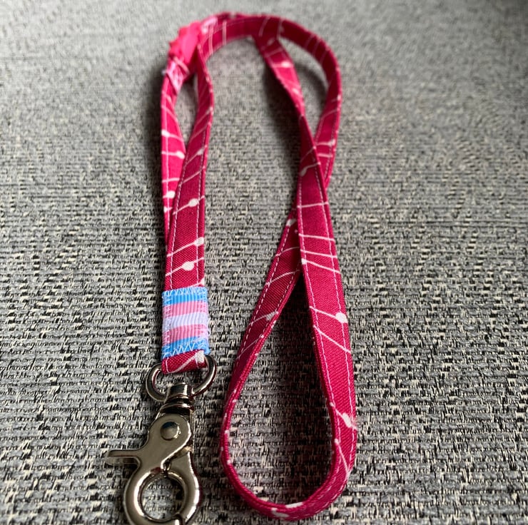 Pink stripy spot 100% Cotton Lanyard with Breakaway Clip