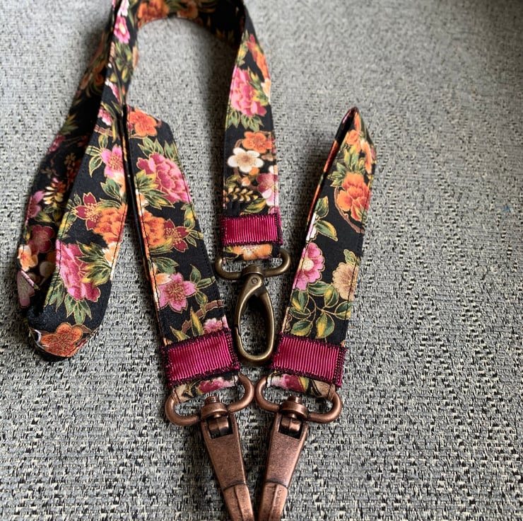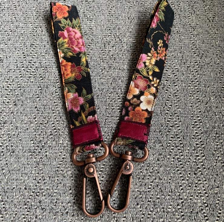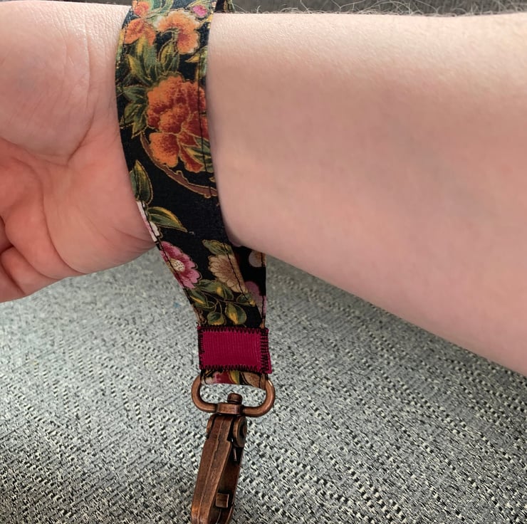 Wrist Strap: Hand made by me from 100% cotton fabric, with lobster clip ends. Finished with a plain ribbon that can be swapped for a pride flag ribbon.