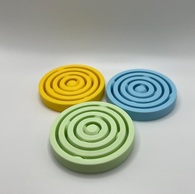 The Air Spinner can also be spun by blowing on the different parts, making it useful for speech therapy to help improve breath support and control.