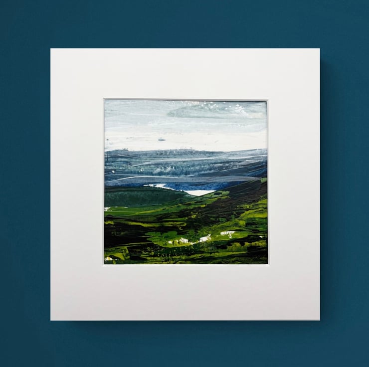 The painting size showing with mount is 5” x 5” (the actual painting size is slightly larger than this underneath mount).