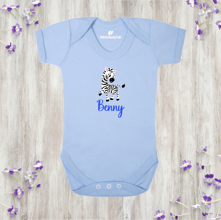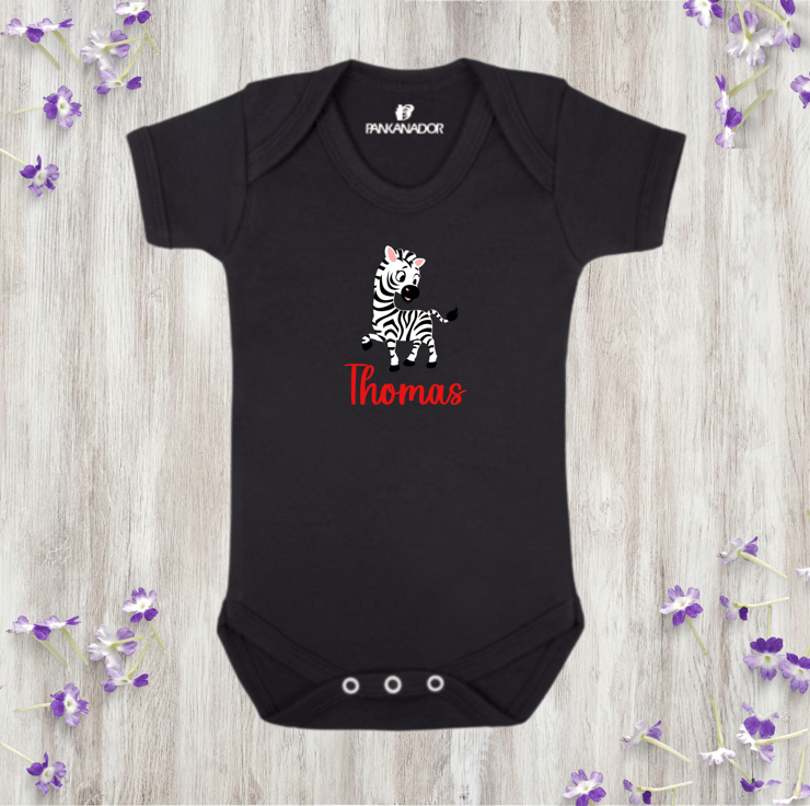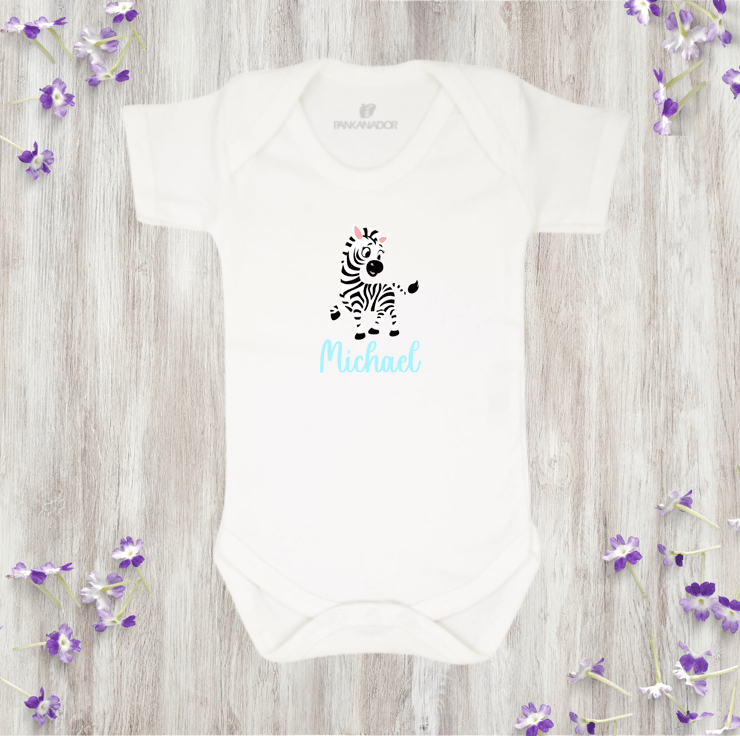 Bring a bit of the wild to your baby's wardrobe with this adorable zebra baby bodysuit! Featuring a sweet zebra illustration and your baby’s name underneath, this safari-themed grow is perfect for little animal lovers and adventurous spirits.