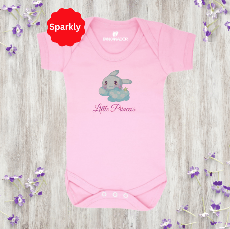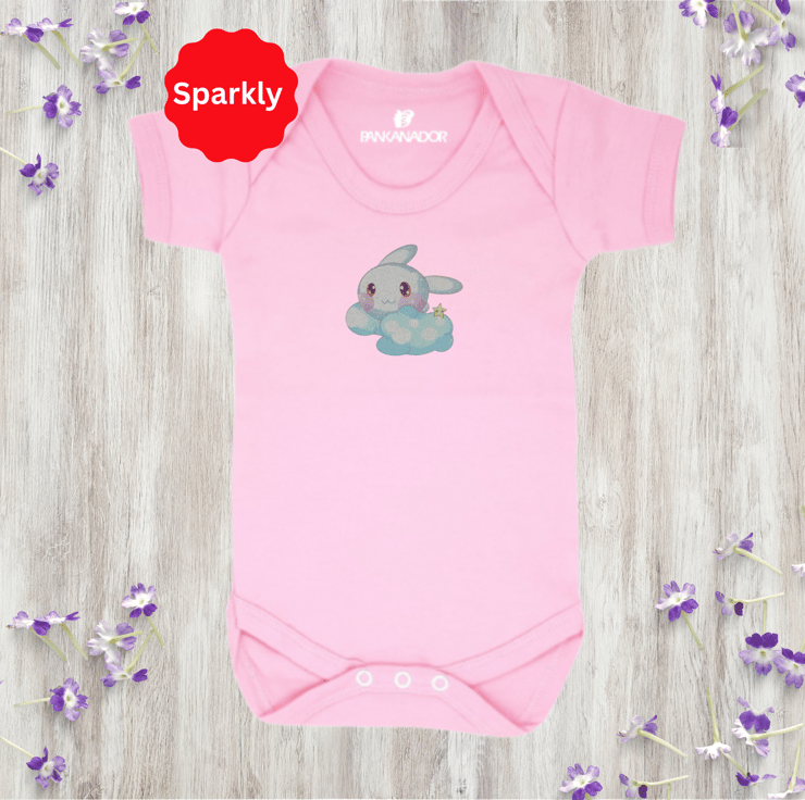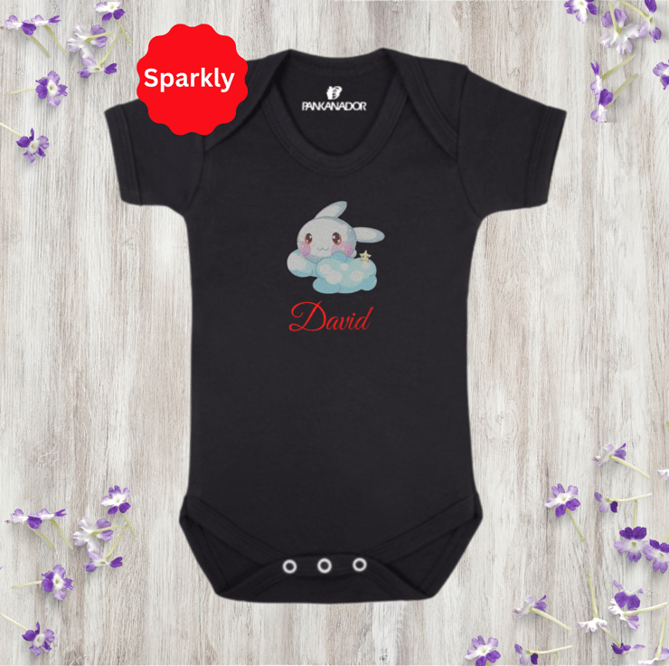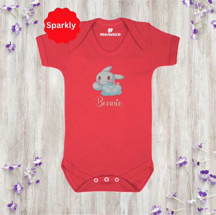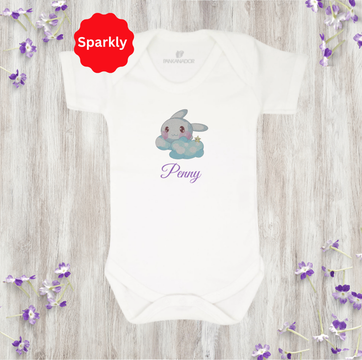 Cute Glitter Bunny Baby Bodysuit – Personalised Baby Grow With Name