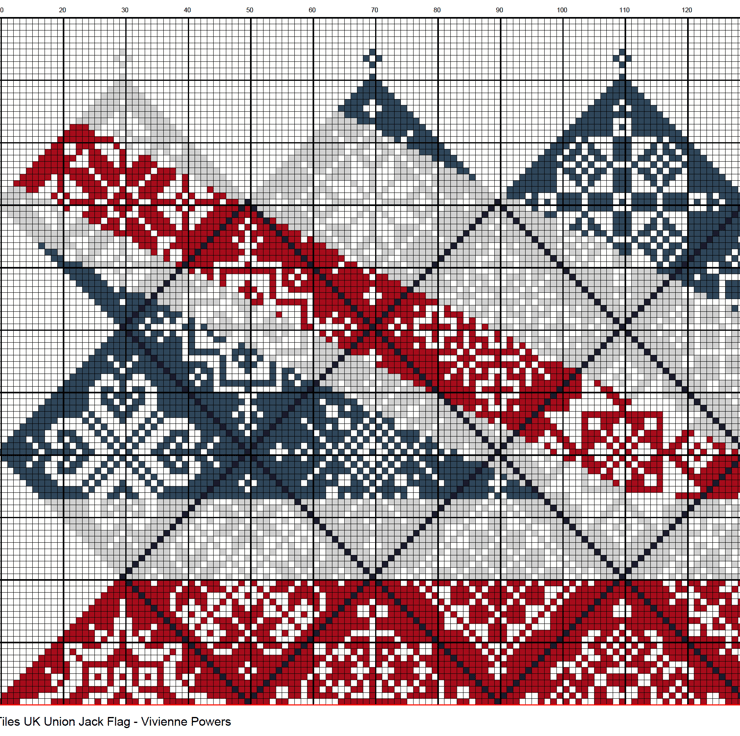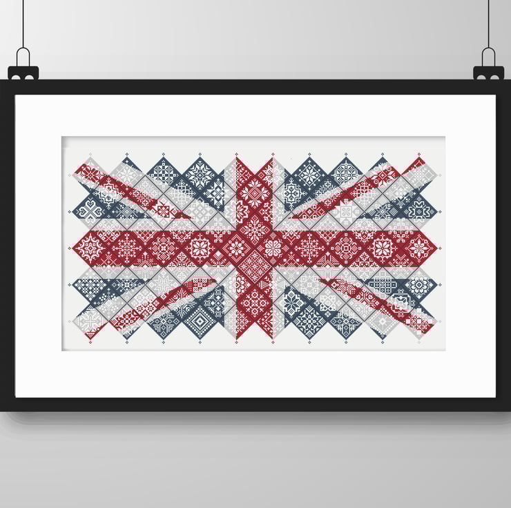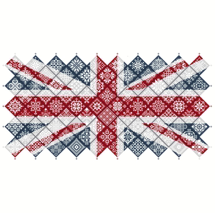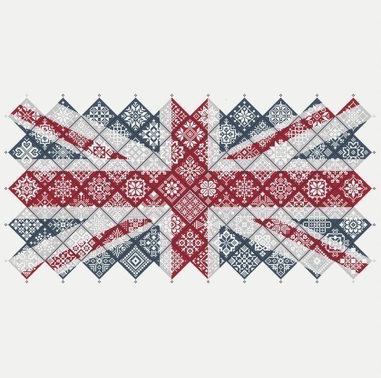 Cross Stitch Quaker Sampler UK Union Jack England Flag tiled patchwork squares patriotic design by Vivsters, PDF counted chart 042UK