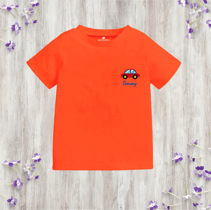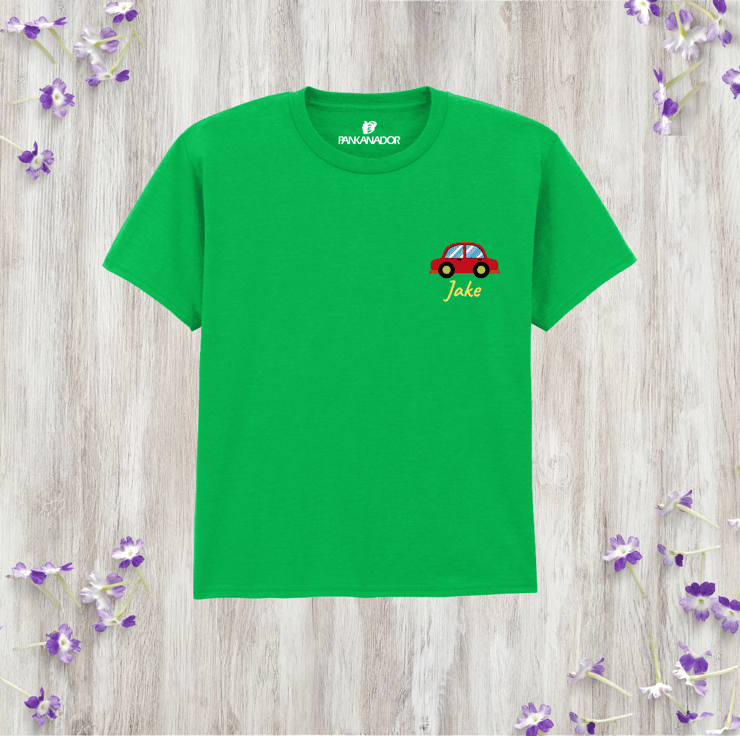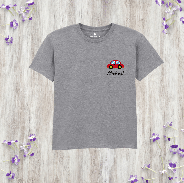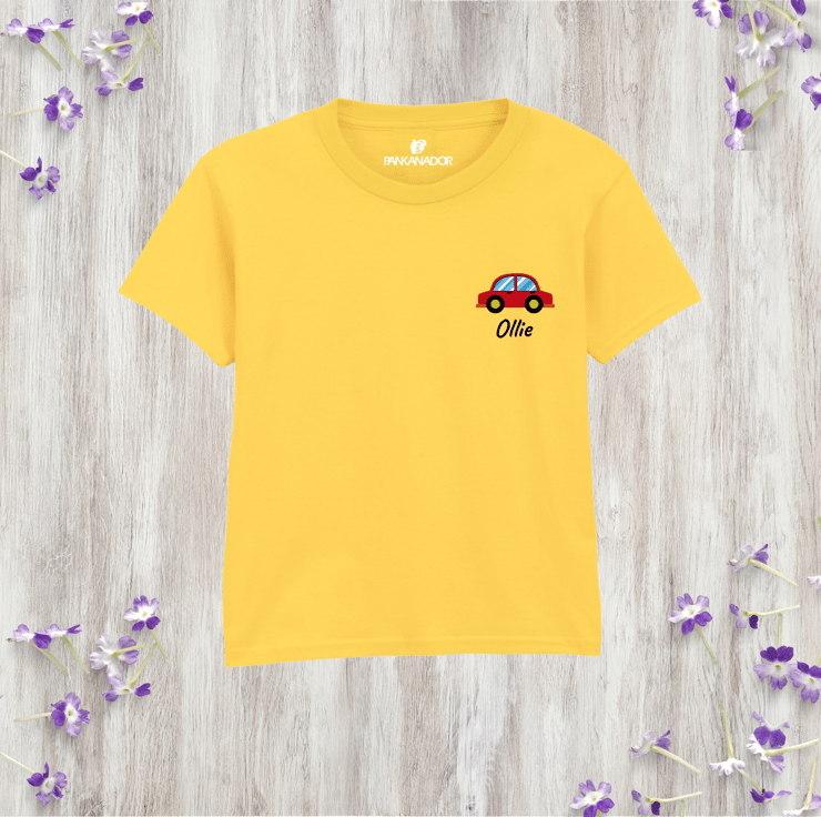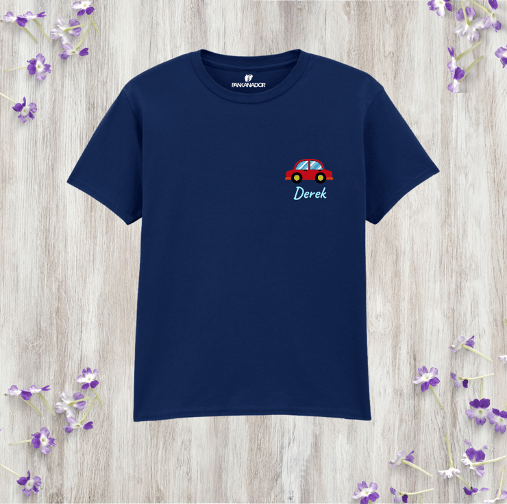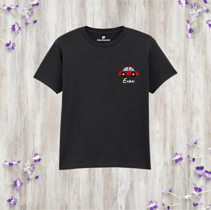 Personalised Kids Car T-Shirt, Custom Name Vehicle Tee, Pocket Style Tshirt