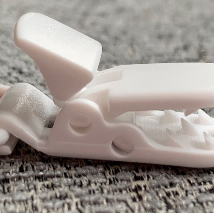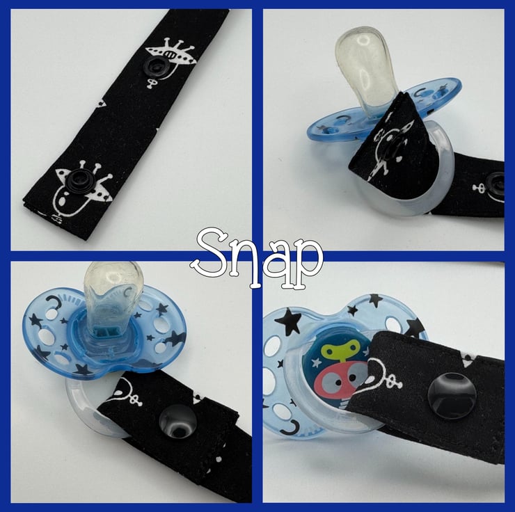 Pacifier clip made of 100% cotton, with a plastic ABS clip and a loop to attach to the pacifier. The fabric is either 2cm or 2.5cm (depending on fabric pattern) wide, and the length is around 40cm including the loop to attach to the pacifier. This is around 8cm longer than pacifier clips I make for babies. The length has been tested and is perfect for a teen or an adult who may use a pacifier or chew.