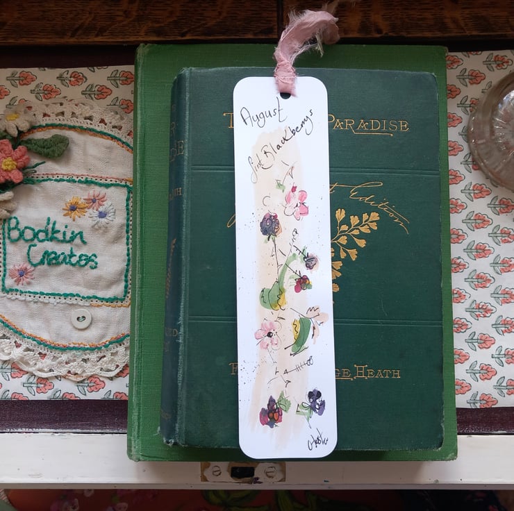 Beautiful nature inspired bookmark hand painted. With a silk trim and handmade envelope. A gift that's light to post and beautiful slipped into a favourite book.