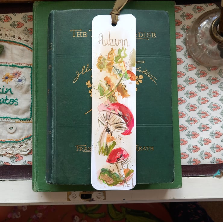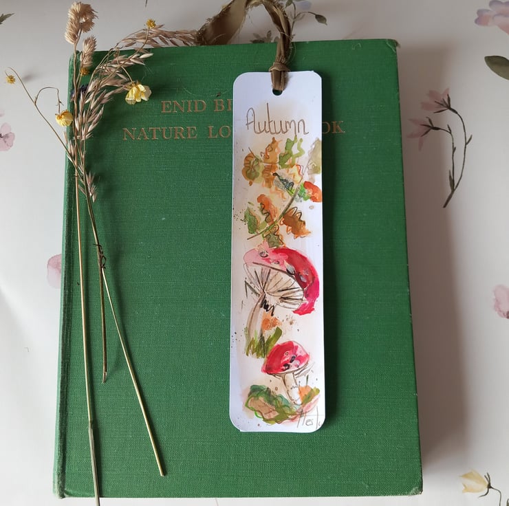 Autumn inspired hand painted bookmark. In my loose signature style with a silk trim. A gift for a book and nature lover