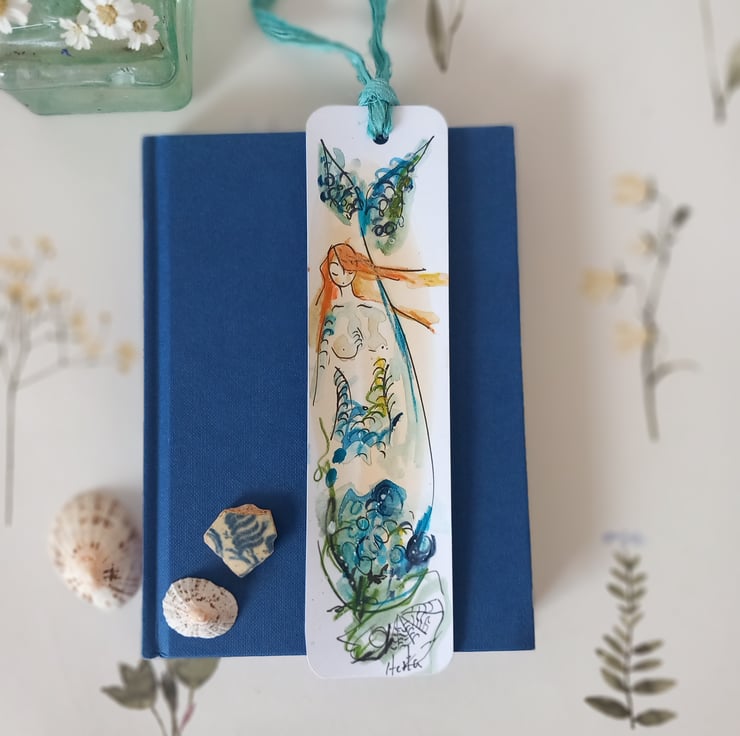 My hand drawn book marks are miniature works of art. I paint each one. First with ink and a dip pen. beautiful gift one off gift. With a silk trim . Free UK.postage
