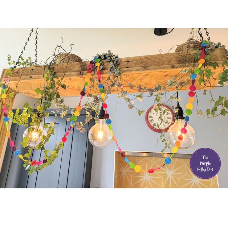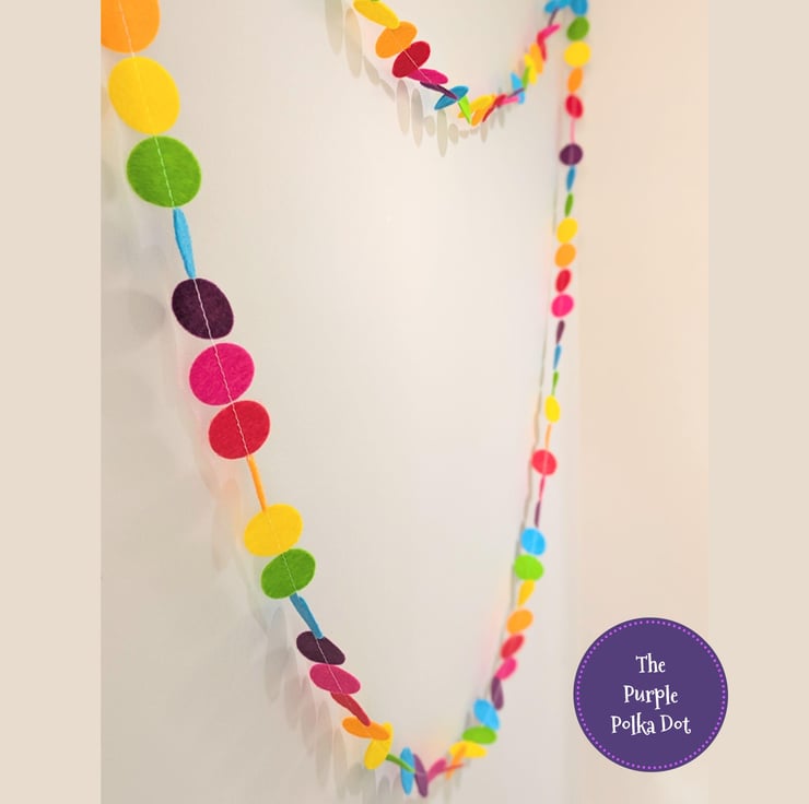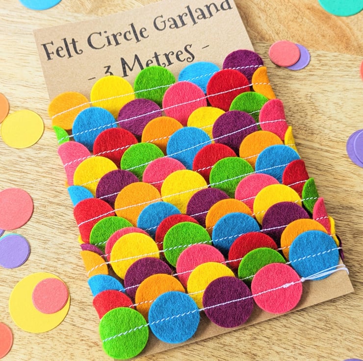 Available in a range of lengths to suit your individual needs. Each felt circle measures approximately 2.5cm in diameter and hanging loops are provided at either end.