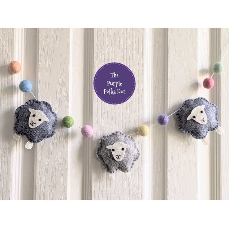 This super cute sheep garland is made from premium wool blend felt and 2cm wool felt balls in spring pastel colours. Each sheep is hand filled and sewn and available in different lengths to suit your needs. These make a perfect gift for sheep lovers but also look the part in a nursery or playroom.
