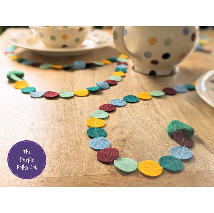 I wanted to make a garland to adorn our new kitchen after a refurb. We have a lot of the Emma Bridgewater polka dot range and I made this to complement that pattern. I thought I would offer it up in my shop for anyone else looking for something similar.