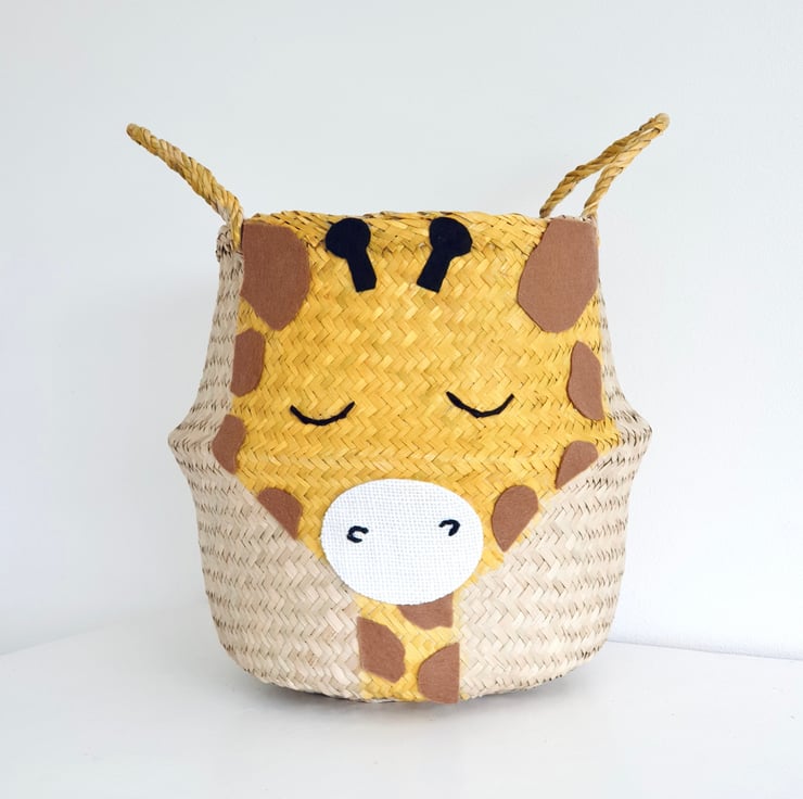 A lovely giraffe belly basket in various sizes, great for a jungle safari themed bedroom or nursery.