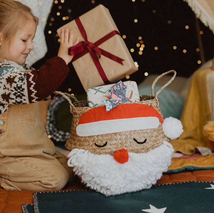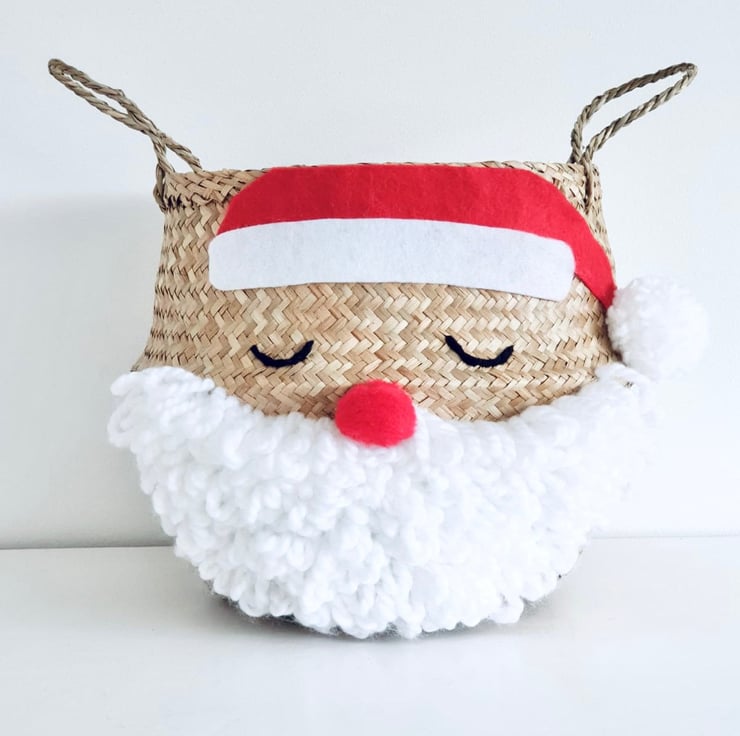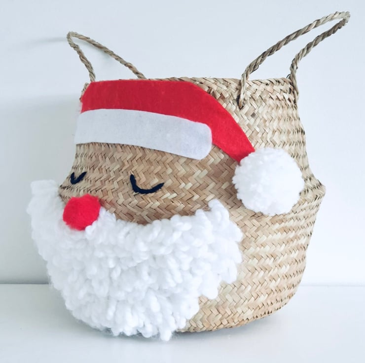 A lovely handmade Santa basket - use as a super cute gift bag, or fill with presents in Christmas Eve. This basket comes in all our sizes, making it the perfect size to fill with small or large Christmas gifts, sweets & goodies! .