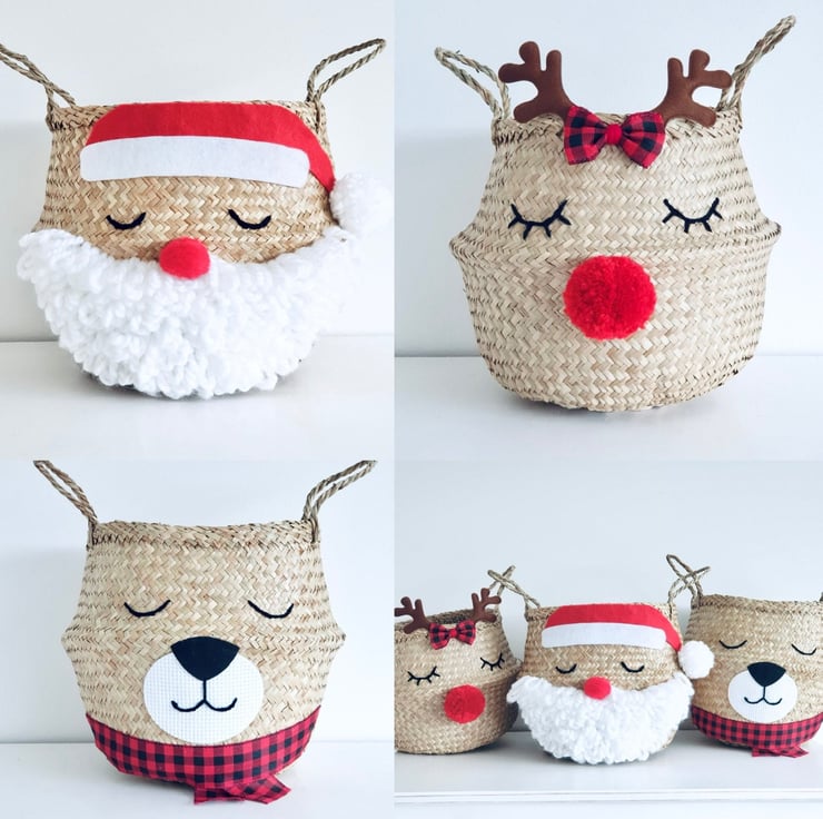 A lovely handmade Christmas Bear basket - use as a super cute gift bag, or fill with presents on Christmas Eve. Perfect to fill with Christmas gifts, sweets & goodies!