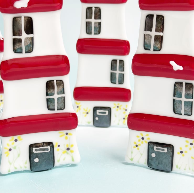 Fired in the kiln before decorating with glass paints to add tiny delicate flowers and firing again.