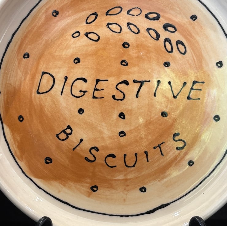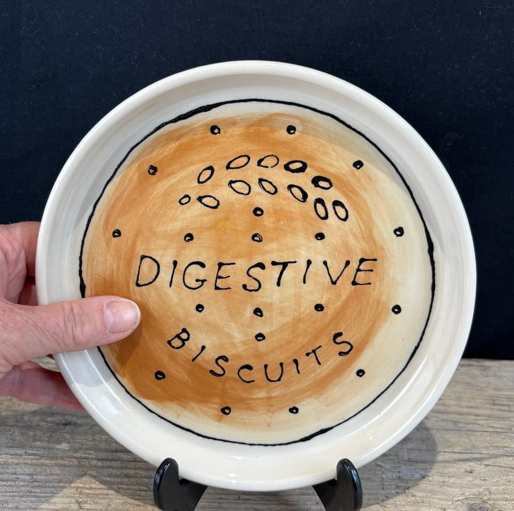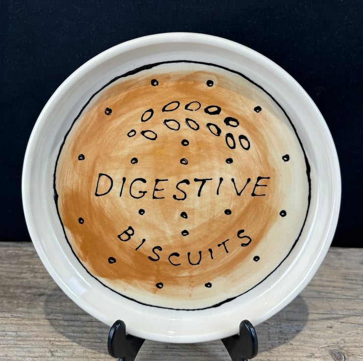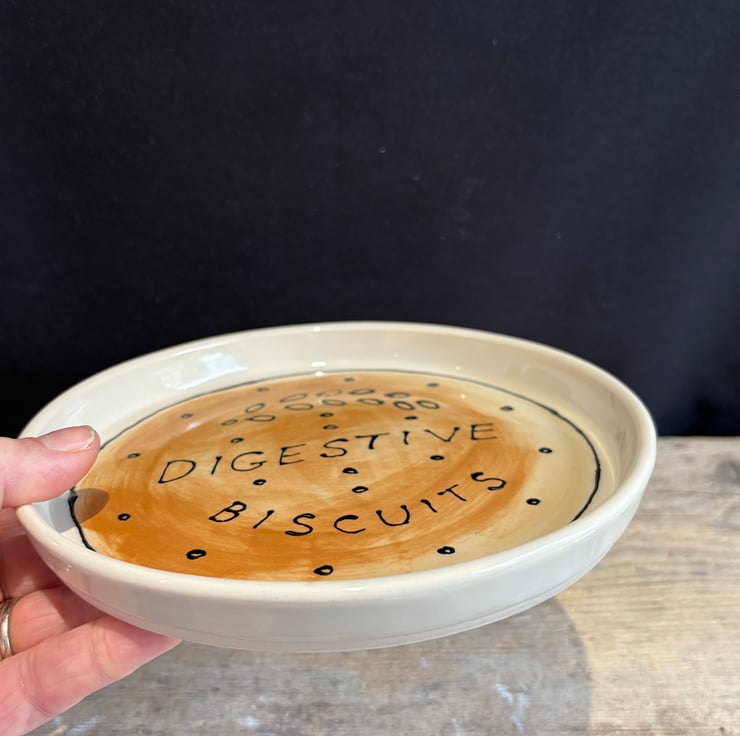 It has been thrown on the potters wheel and then hand painted with ceramic underglazes to look like a massive Digestive which makes for an eye-catching addition to your kitchen or dining table.