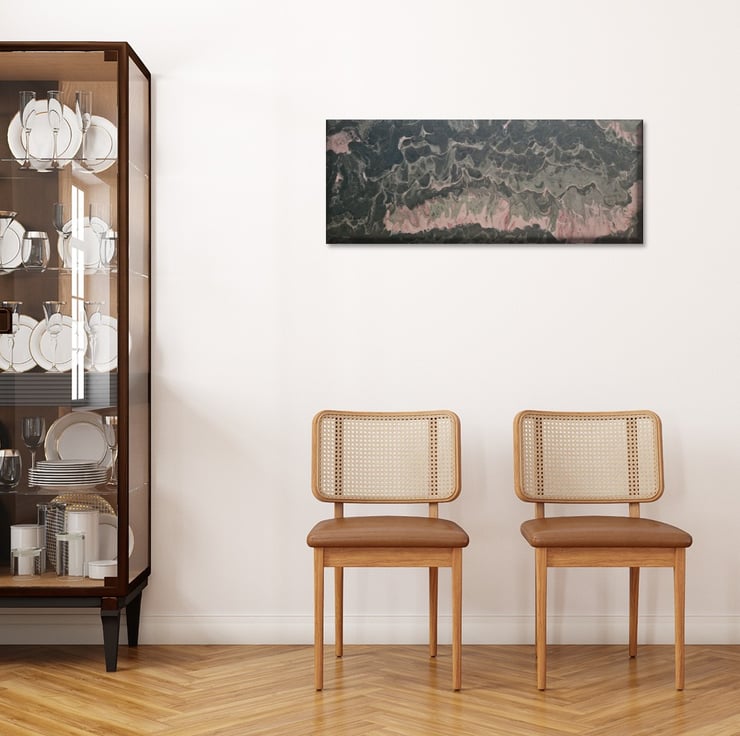 Finished with coats of gloss varnish, this long rectangular canvas will enhance any room in horizontal or vertical aspect.