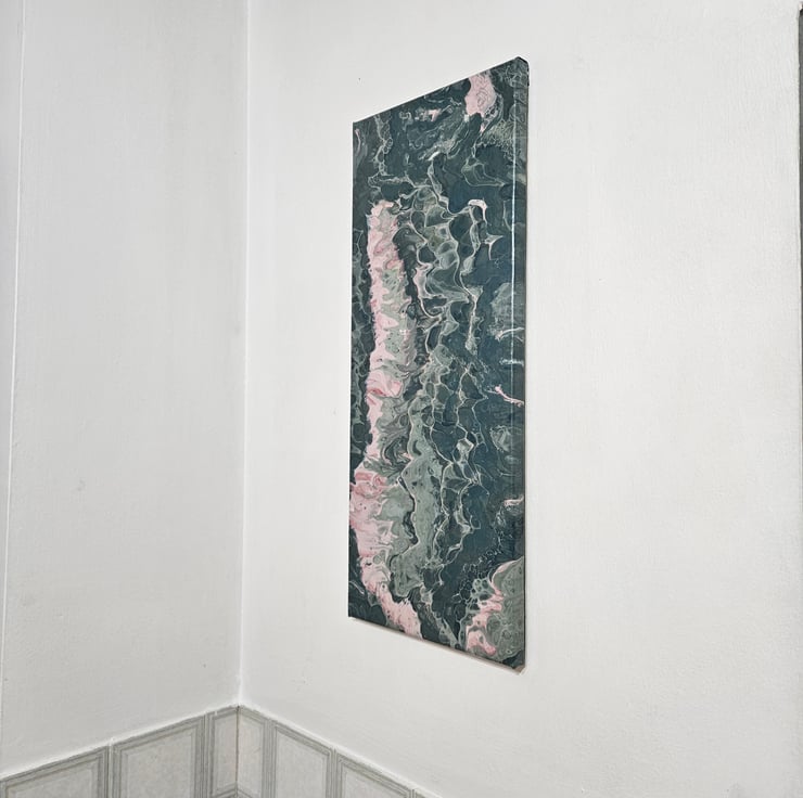 Please note: Due to the nature of paint pouring, some pieces will have more of a textured finish than others. All paintings are finished with multiple coats of varnish and fully dried and cured before being offered for sale.