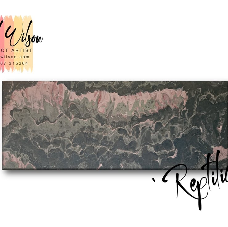 'Reptilian' 50cmx20cm (approx 20x8inch) Acrylic Fluid Art painting on gallery wrapped canvas.
