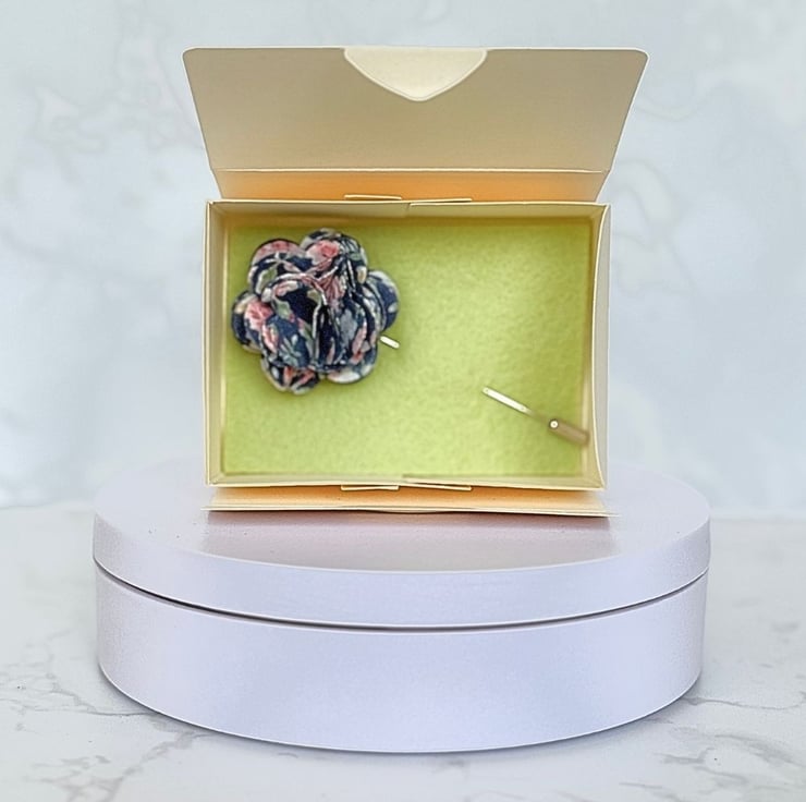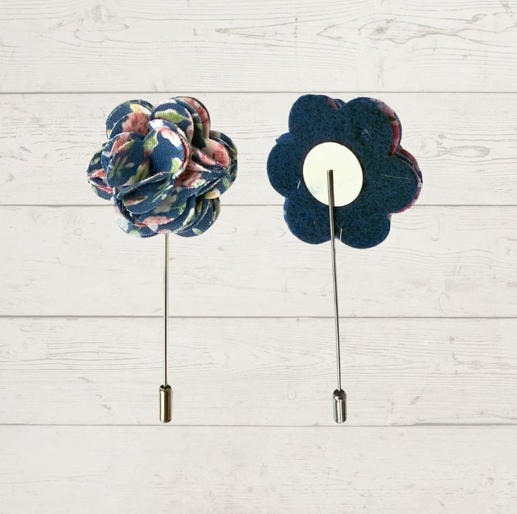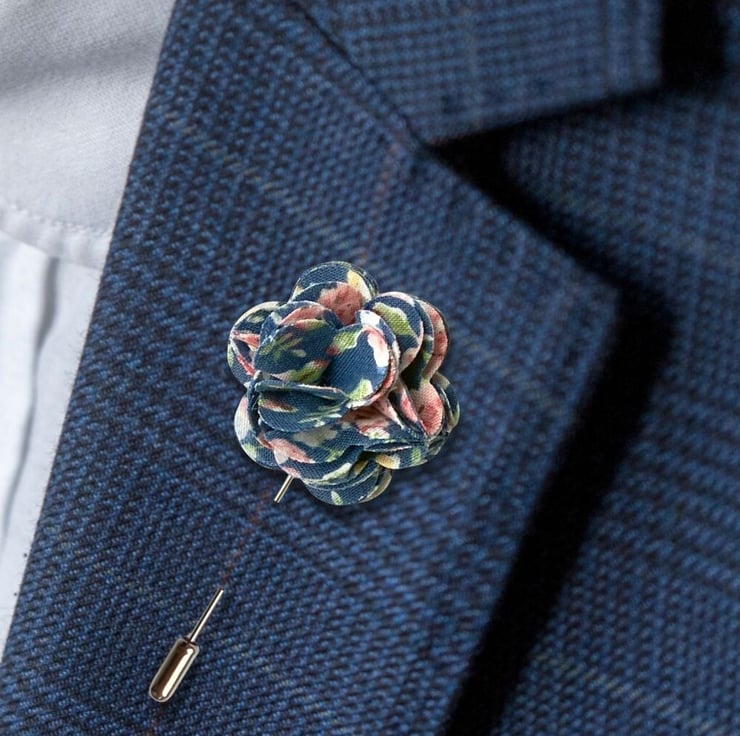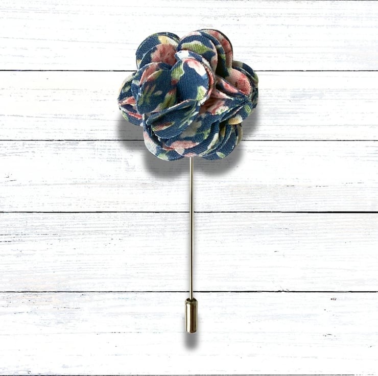 Add a subtle yet stylish finishing touch to your outfit with this handcrafted fabric flower lapel pin. Carefully sewn by hand using blue floral-print fabric, this elegant accessory is the perfect finishing touch for weddings, parties or simply elevating your everyday suit.