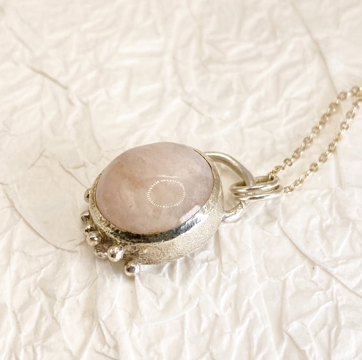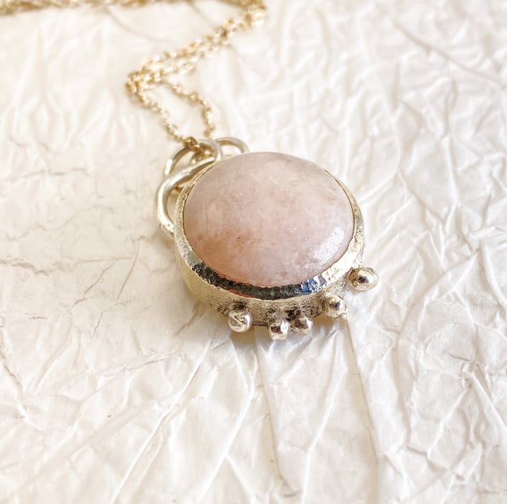 Soft pink, and full of love — this handcrafted morganite pendant set in textured sterling silver with granulation, is the perfect piece to add elegance and warmth to any outfit. Wear it solo for a delicate statement or layer it for a romantic, artisan touch.
