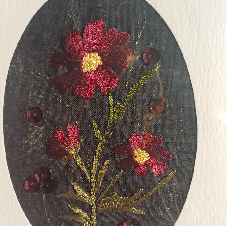 Silk thread in cotton fabric. Few upcycled sequence. Gold line with a pen