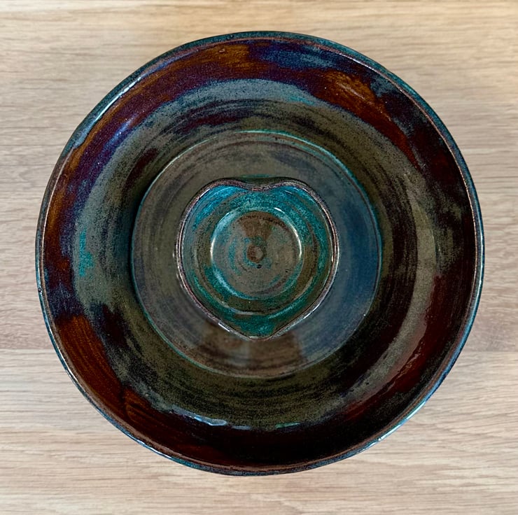 Serve up something special with this hand-thrown olive dish, designed with heart-literally. Crafted from earthy stoneware and finished with a distinctive glaze, each dish features a sweet, heart-shaped center perfect for pits. Whether you're hosting friends or savouring a solo snack, this piece adds a thoughtful, folksy charm to your table.