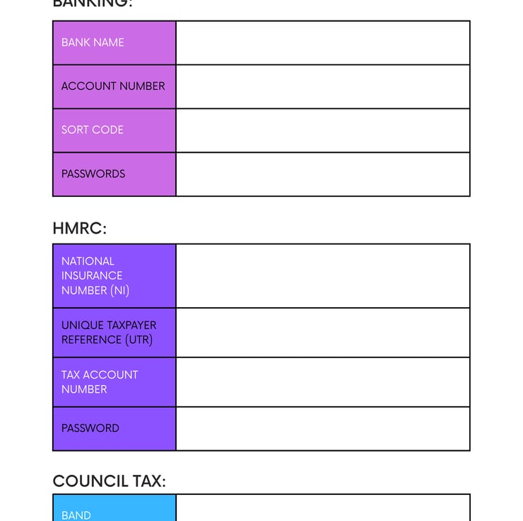 A 22 page PDF printable file for helping with life planning. Print each sheet as many times as you like, however you like. Especially useful if like me, your ADHD means its helpful to have things in one place.