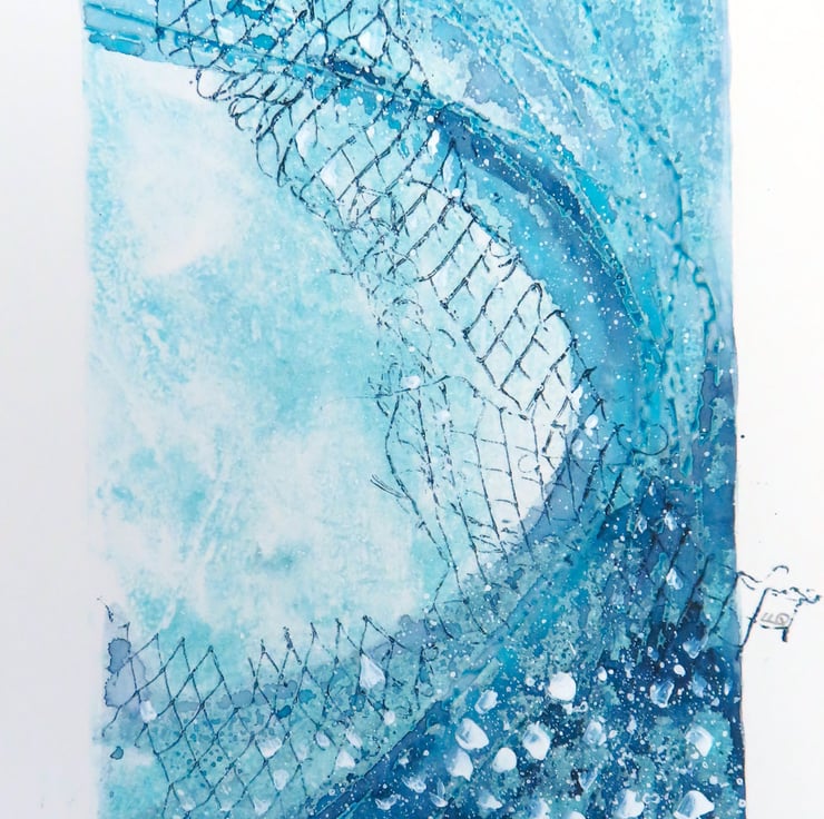 An original miniature mixed media ocean myth inspired art piece on paper measuring 13x18.5cm, this piece comes unmounted and unframed. The listing is for the piece in the first image - the third image shows it with a companion piece that is available separately in store.