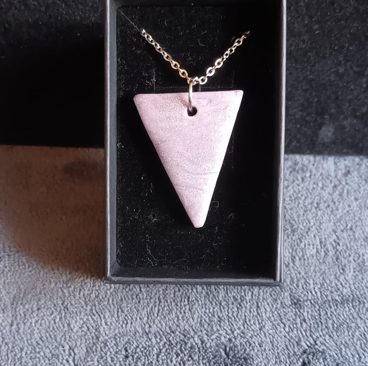 Long length stainless steel necklace featuring a polymer clay textured shape. Stainless steel is naturally waterproof and hypoallergenic making it durable and long lasting.