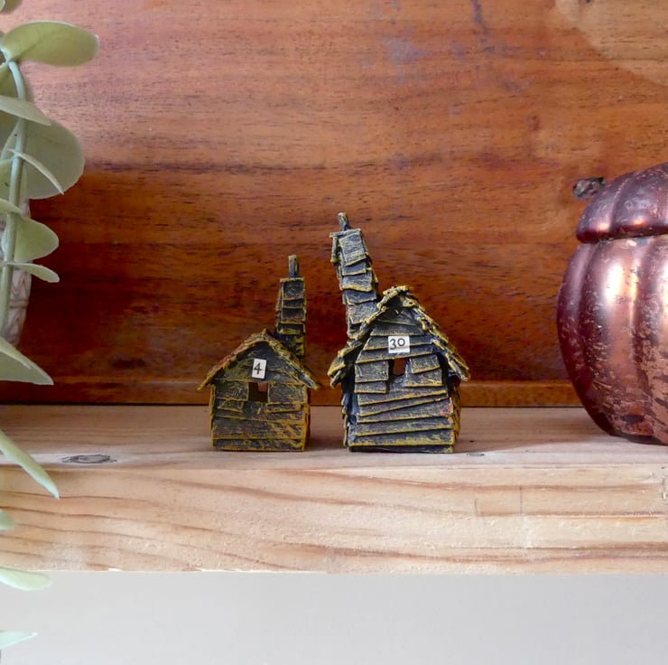 Put the numbered houses out one by one throughout October, for example on a mantelpiece, to count down to Halloween