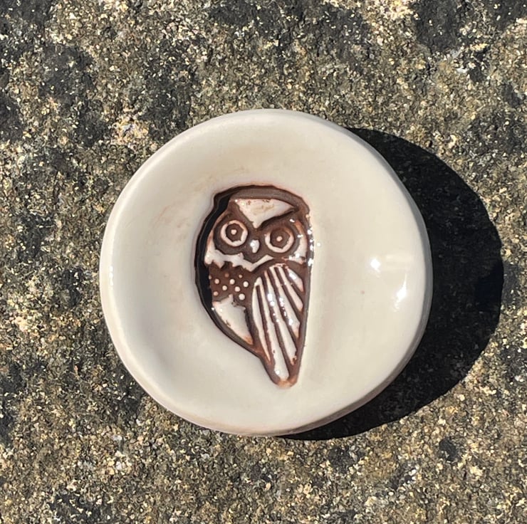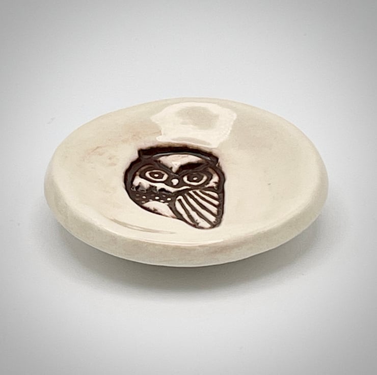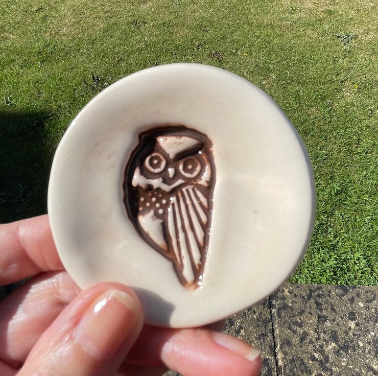 This is my ceramic ring dish with embossed owl design - perfect for rings, jewellery, trinkets or little treasures.