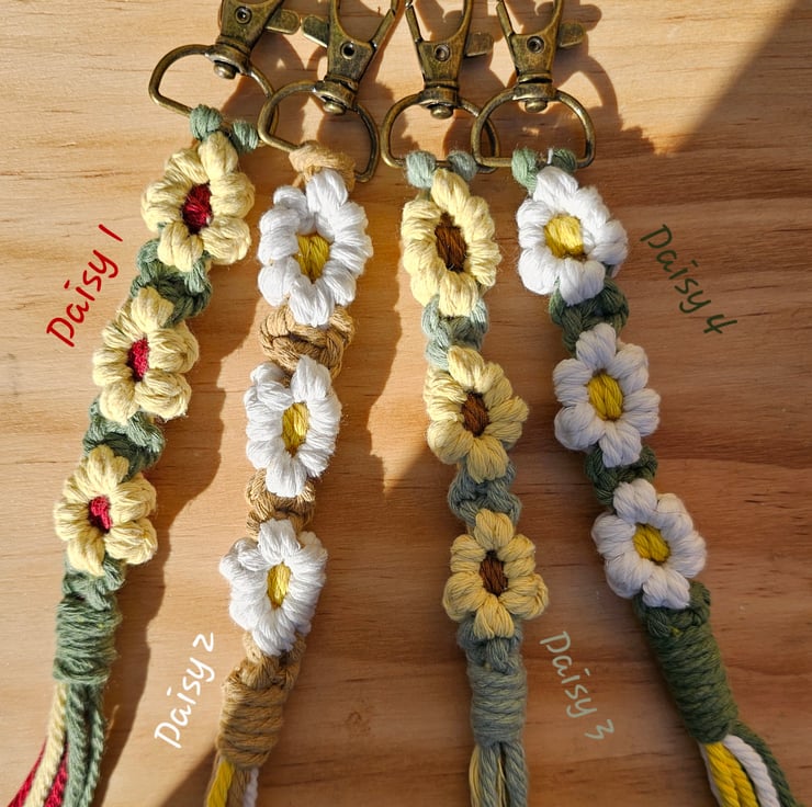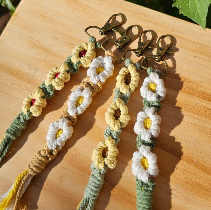 Crafted with love and care, each daisy charm is made using high-quality cord and finished with a strong keyring, making it perfect for personalising your keys, bags, backpacks, or even gift packages.