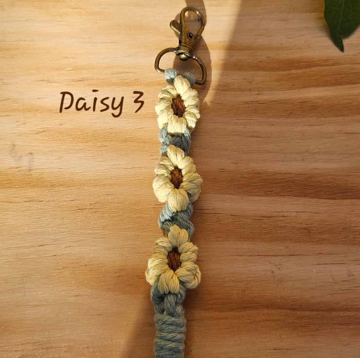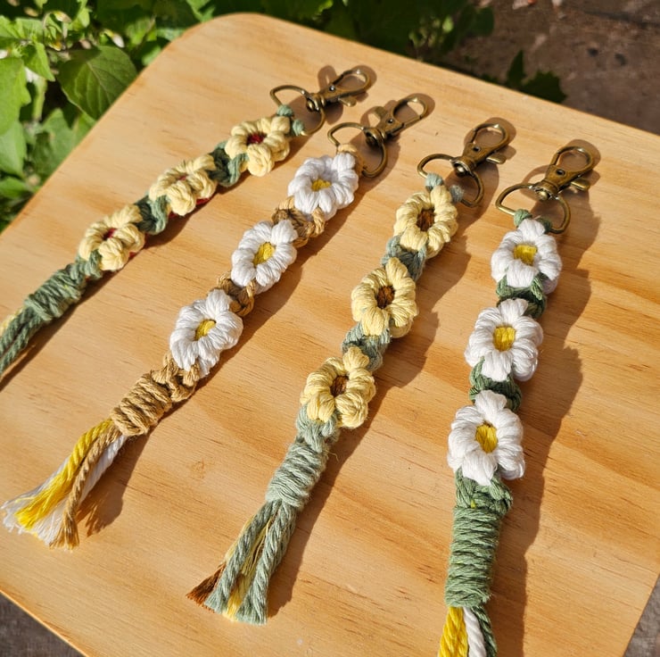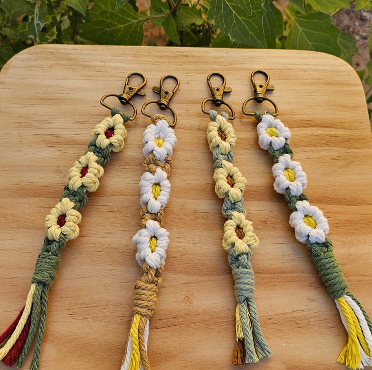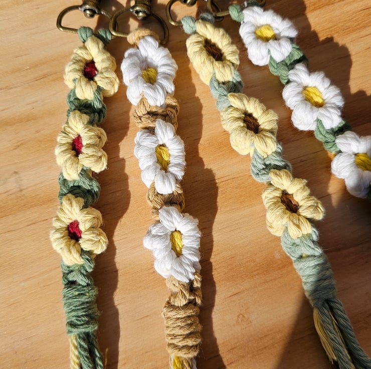 Bring a touch of handmade charm to your everyday with this delightful macramé daisy keychain.