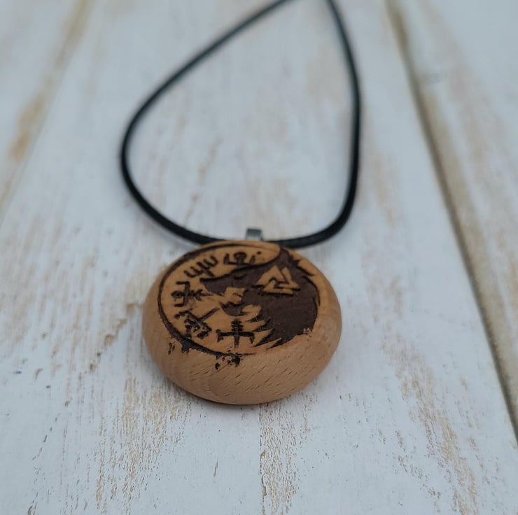 Fenrir Rune Pendant – Laser Engraved Beechwood Necklace with Stainless Steel Bail