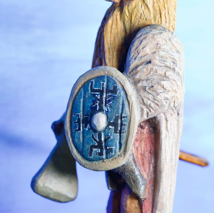 Carved and painted by hand. This little warrior is about 16cm tall. He is carved from basswood.