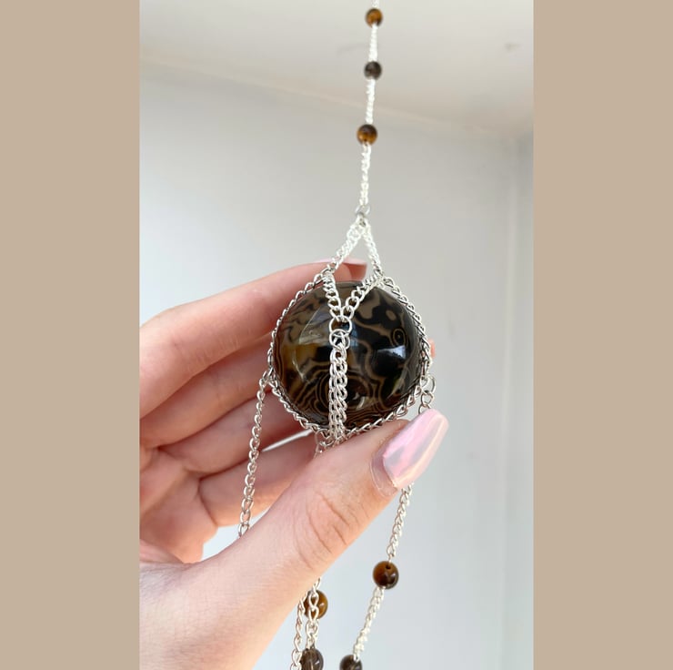 Handmade fingerprint agate suncatcher/crystal wall hanging