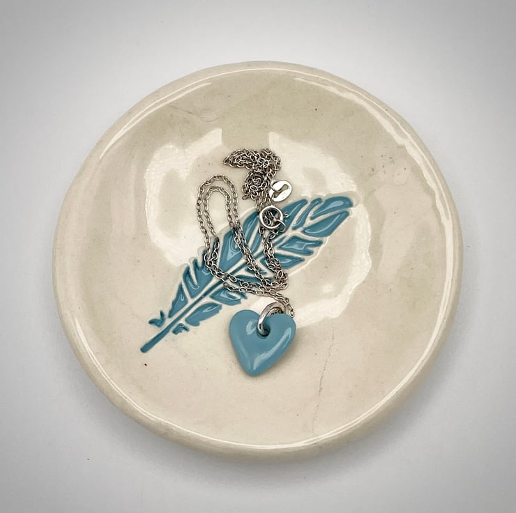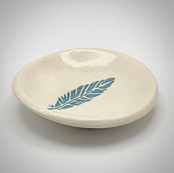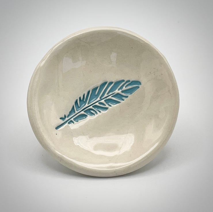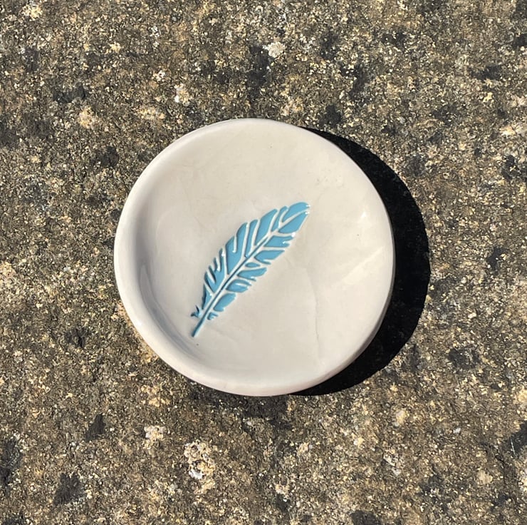 This is my aqua-blue feather embossed ceramic trinket dish - perfect for jewellery, trinkets and your little treasures or as a small soap dish.