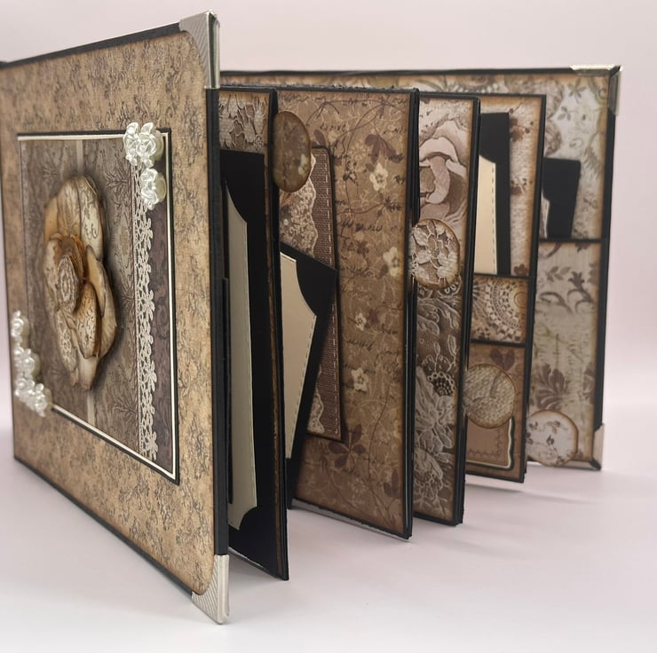 This album is full of pockets and swivel closures which have photo mats and extra tags to place your photos.