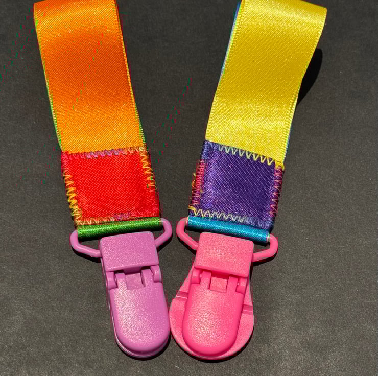 Ribbon Fidget with Colourful Plastic (Pacifier-Braces Style) Clip