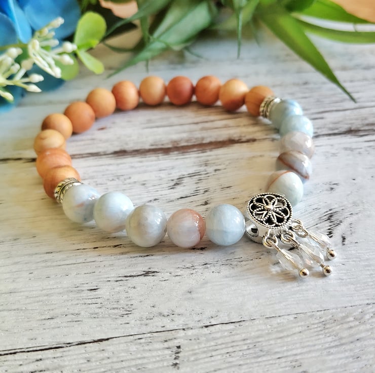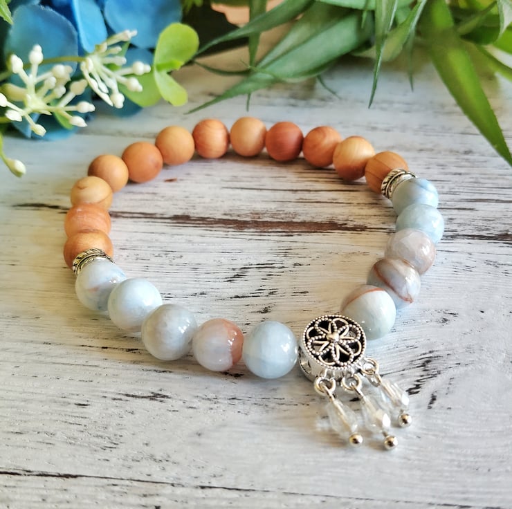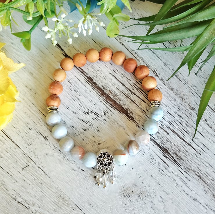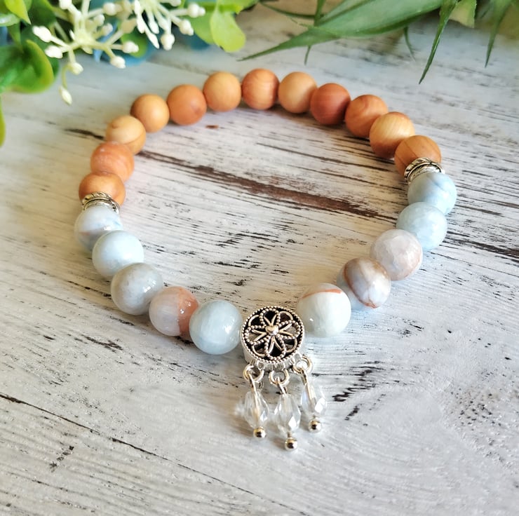 Blue Chalcedony and Walnut Pine Dreamcatcher Bracelet