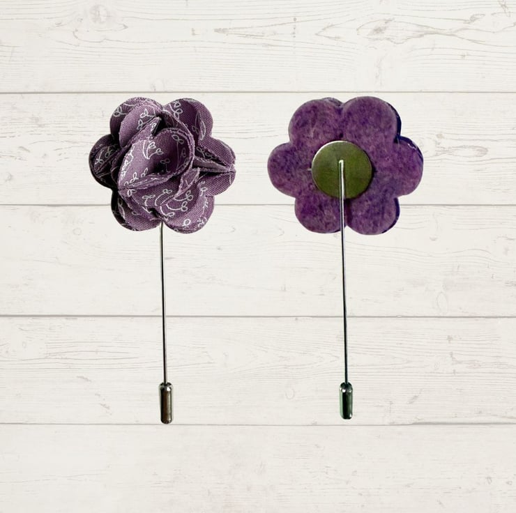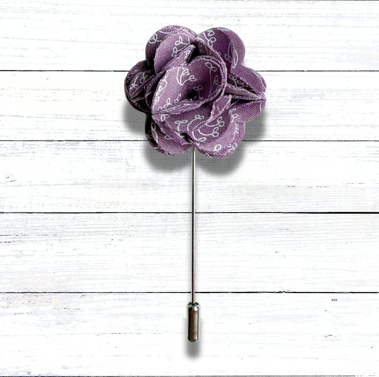 Add a subtle yet stylish finishing touch to your outfit with this handcrafted fabric flower lapel pin. Carefully sewn by hand using dusky purple floral-print fabric, this elegant accessory is the perfect finishing touch for weddings, parties or simply elevating your everyday suit.