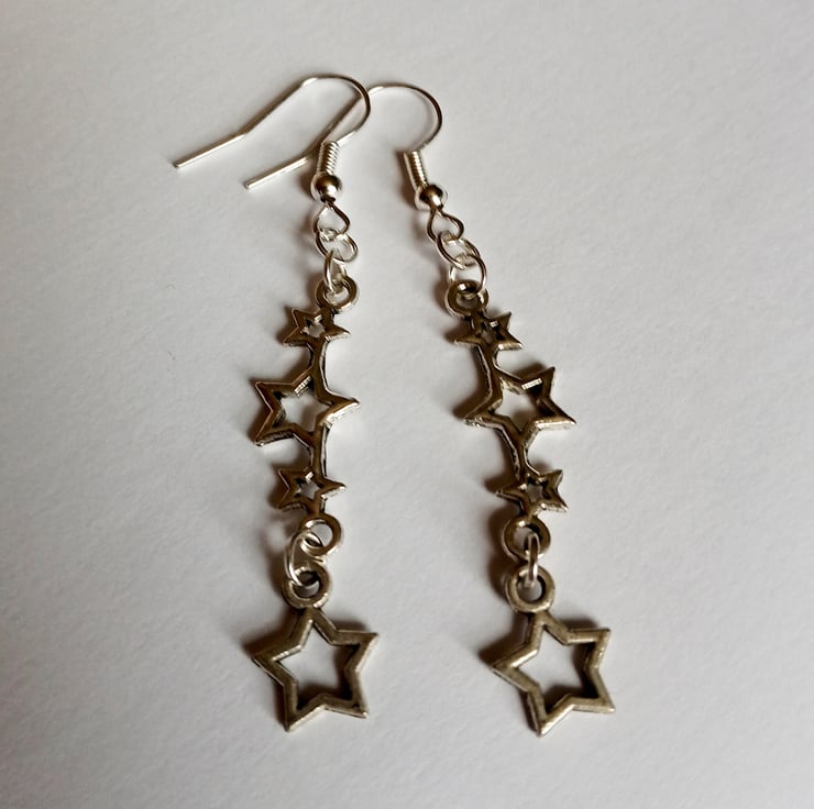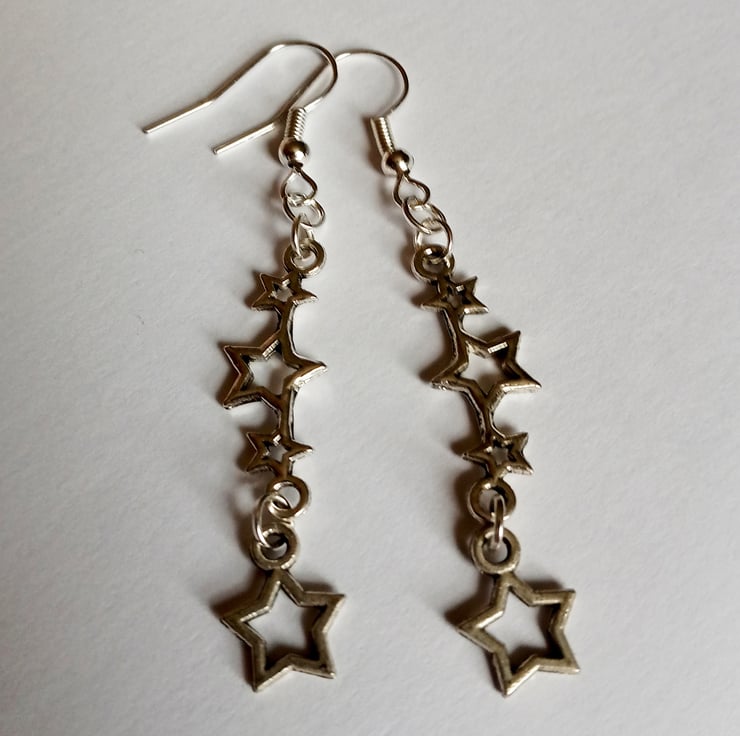 These lovely earrings feature wonderful star charms finished with silver plate hooks.
