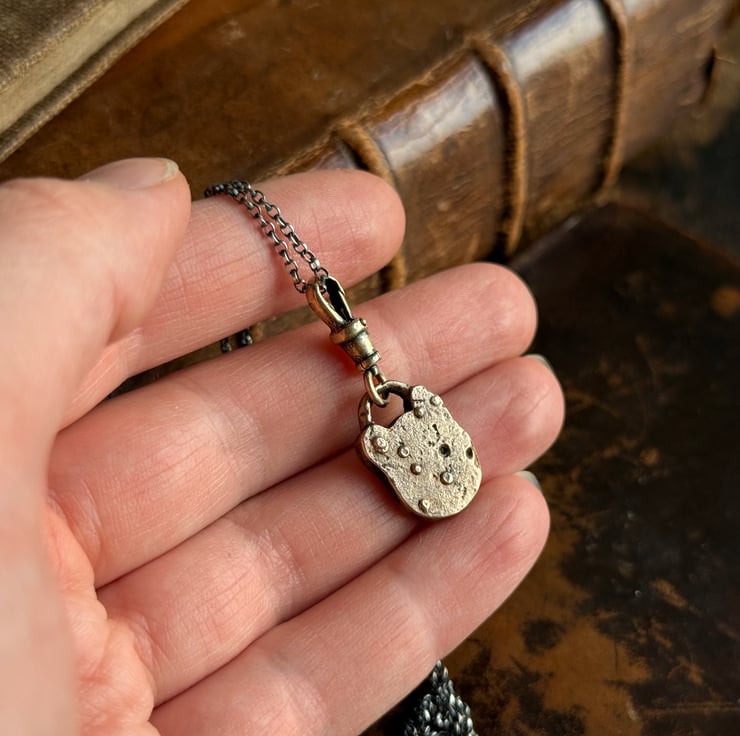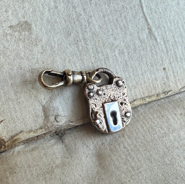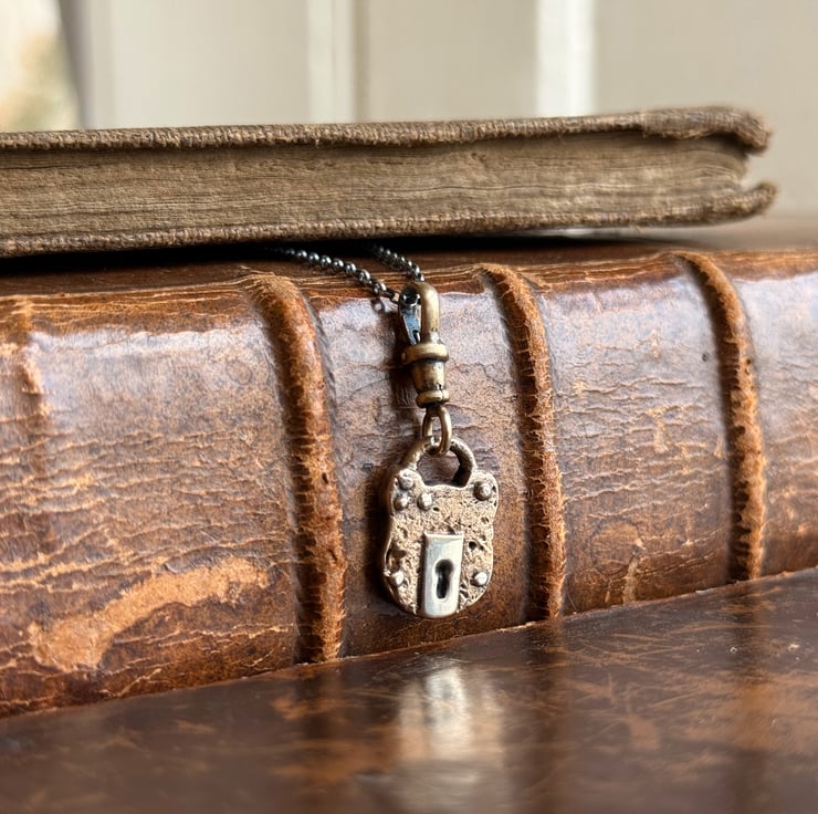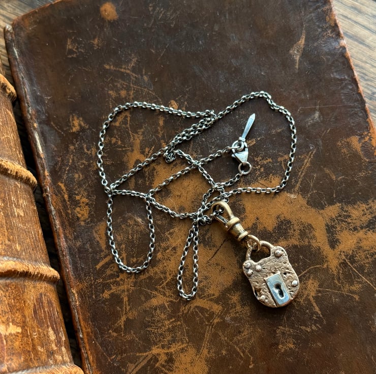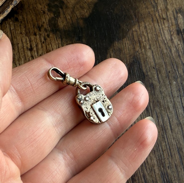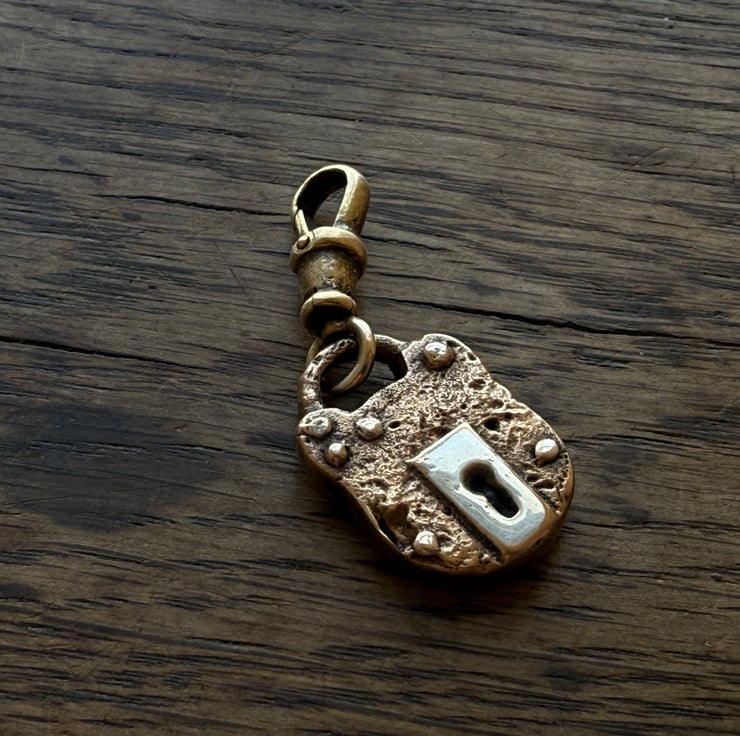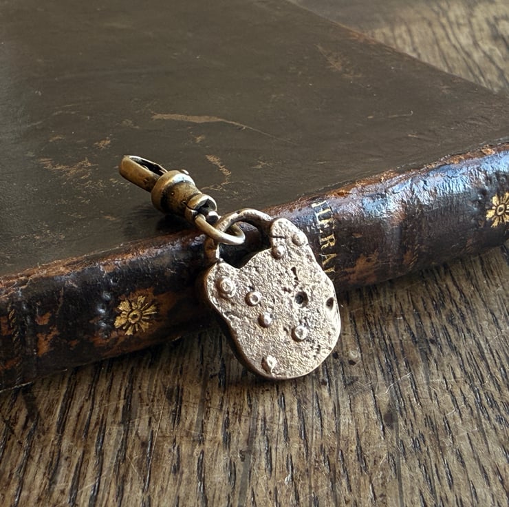 A unique padlock charm inspired by the old, rusted British made victorian-Edwardian iron padlocks we find on our mudlarking adventures.