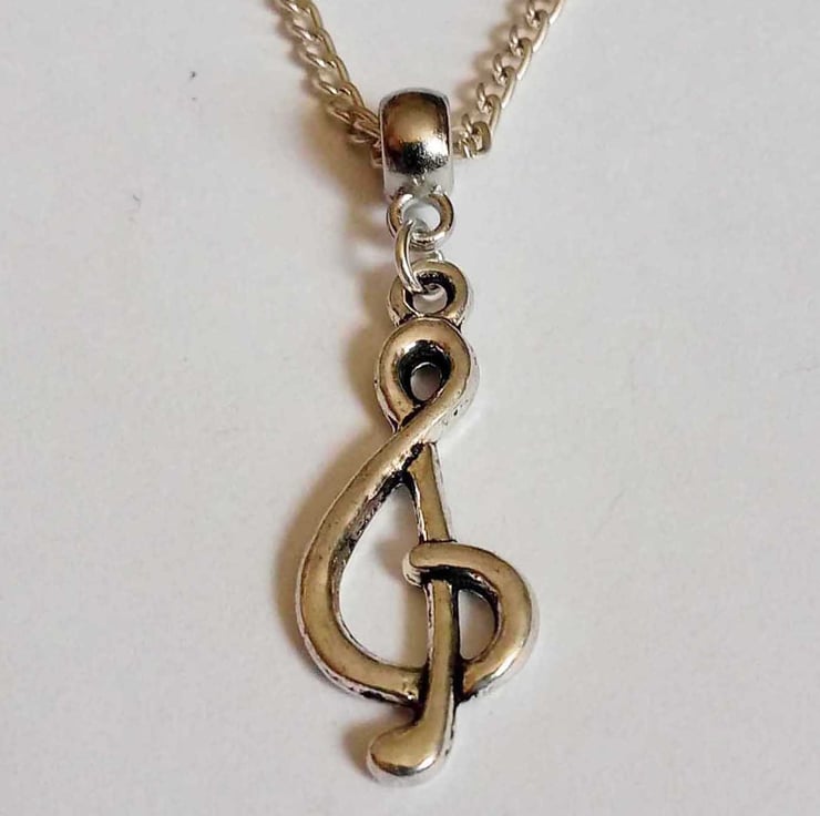 This wonderful necklace features an elegantly detailed treble clef charm hanging on 18" silver plate chain.