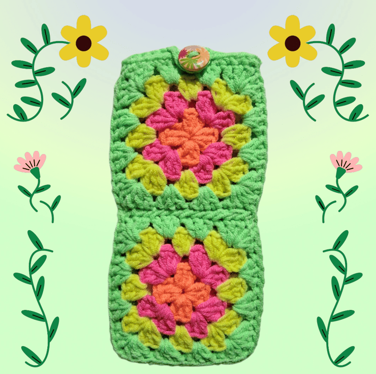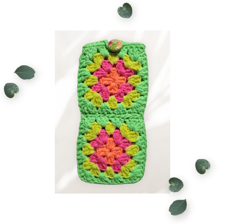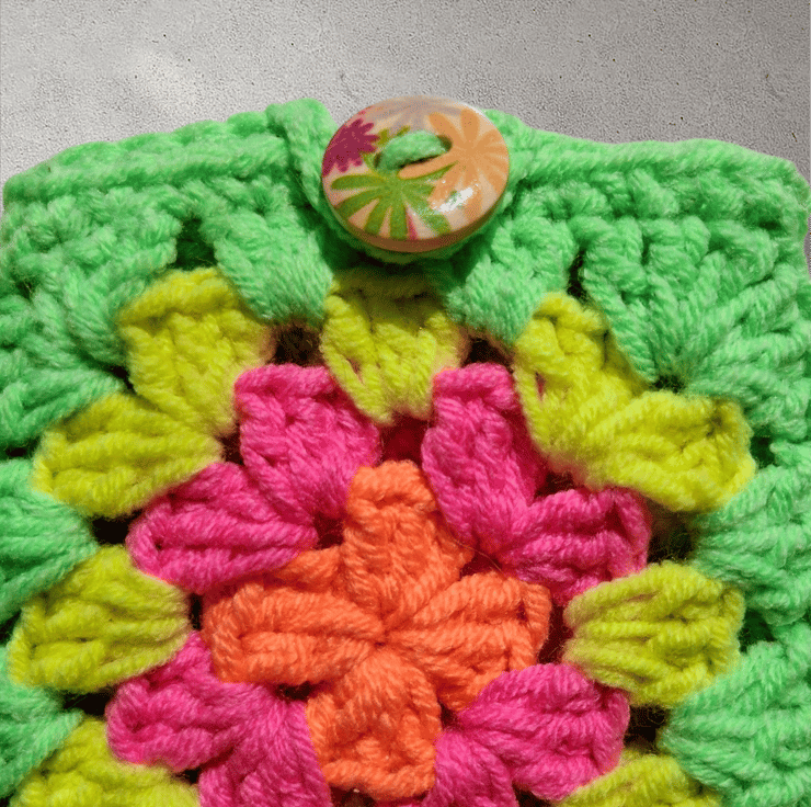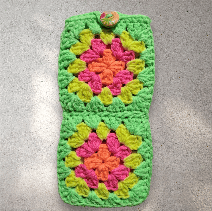15 cm x 8 cm. Crocheted in soft cotton blend yarn.