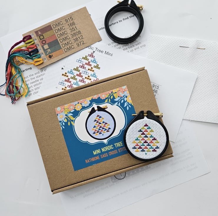 A complete cross stitch kit to sew your own Mini Nordic Tree design - perfect for yourself or as a gift.